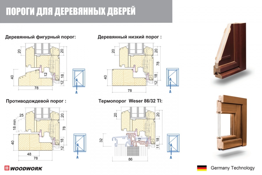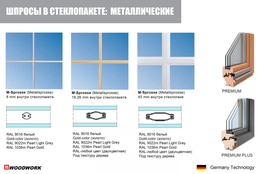Варианты дизайна: 5 вариантов различного профилирования для индивидуализации ваших окон: угол 10° – классический дизайн; угол 20° – современный дизайн; угол 90° – дизайн в стиле хайтек/лофт; традиционный европейский дизайн; дворцовый стиль. Пороги для балконных дверей: классический; деревянный низкий; деревянный фигурный; алюминиевый низкий. Возможны различные варианты раскладки и декоративного деления окон для индивидуального дизайна: алюминиевый шпрос (монтируется внутри стеклопакета) от 8 мм до 40 мм; деревянный горбылёк стеклоделящий от 40 до 120 мм; деревянный горбылёк наклеиваемый от 20 до 120 мм.