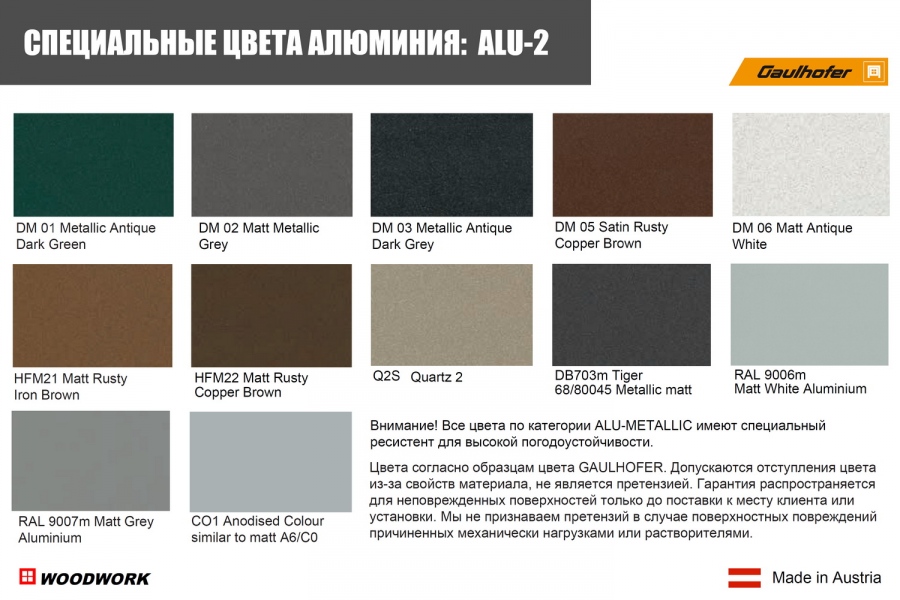 2) ALU RAL METALLIC включает 12 оттенков, в том числе несколько анодированных цветов.