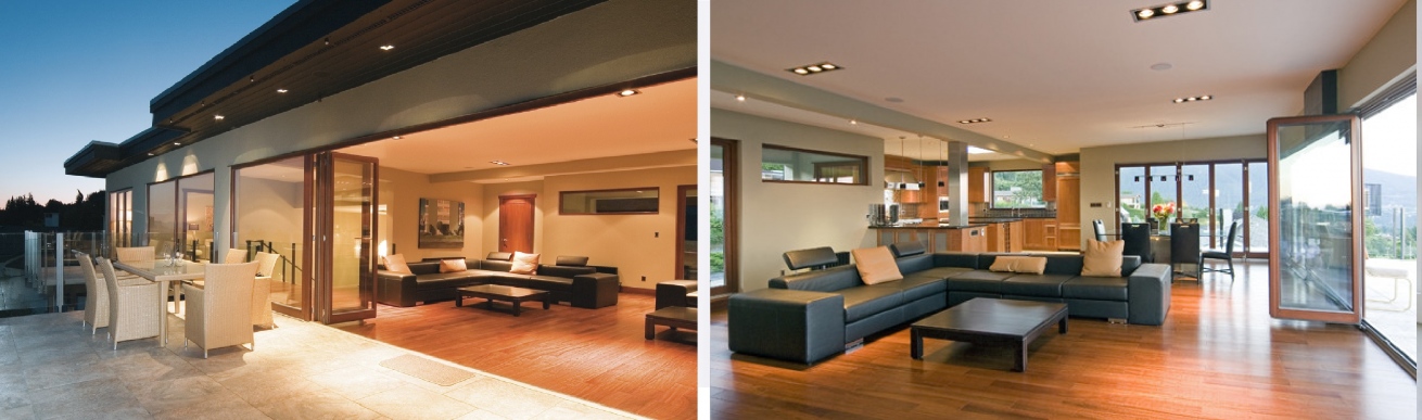 В раздвижных панорамных конструкциях Гаульхофер использует сдвигающиеся (слайдинг двери) типа HS-portal, складывающиеся (раздвижные двери гармошка) типа FST-portal, отъезжающие двери (сдвижные двери купе) типа PSK-portal, что дает возможность свободного прохода к открытым террасам, зимним садам и теплым верандам. Стабильные и надежные конструкции раздвижные двери делают возможным применение широких створок, что значительно улучшает оптический эффект, позволяя иметь великолепный панорамный вид, а применение элементов из дерева, дерево-алюминия, пластика, алюмо-пластика дает широкий выбор для воплощения самой фантастической идеи панорамные окна в реальность. Ведь раздвижные двери и панорамные окна это единственный способ остеклить загородный дом невидимой раздвижной стеной, которую в любой момент можно сдвинуть, таким образом, убрав любые преграды к наслаждению созерцания прекрасного вида из панорамных окон вашего дома. Теплые раздвижные двери это комфорт и уют в зимнее время. Наибольшей популярностью все же пользуется раздвижные конструкции из лиственницы, т.к. эта древесина зарекомендовала себя как самая устойчивая к любым погодным явлениям. Теплые раздвижные двери для веранды или зимнего сада изготавливаются также из сосны, австрийской ели, возможны и твердые породы дерева - дуб, меранти.