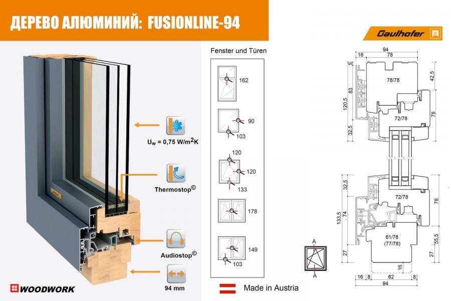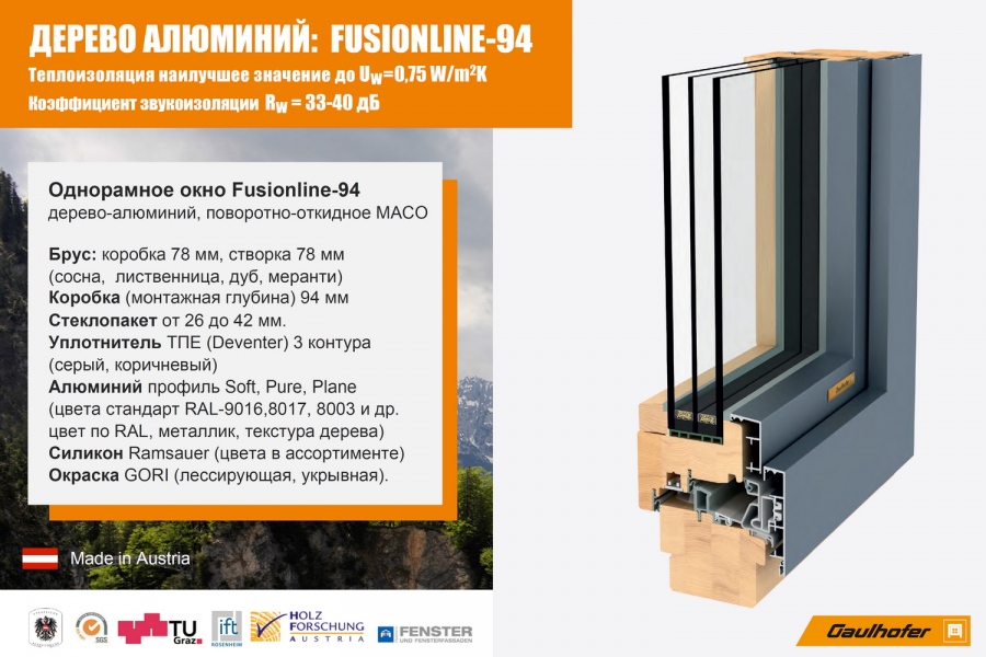 Окна дерево алюминиевые Fusionline 94 от Гаульхофер- это самое надежное и теплое остекление на сегодняшний день в мире!
