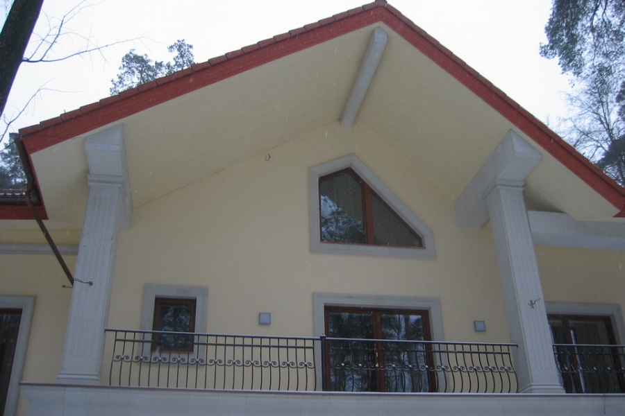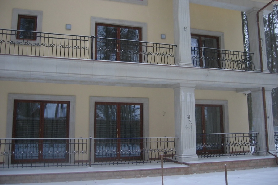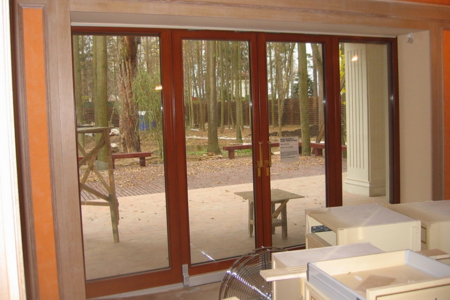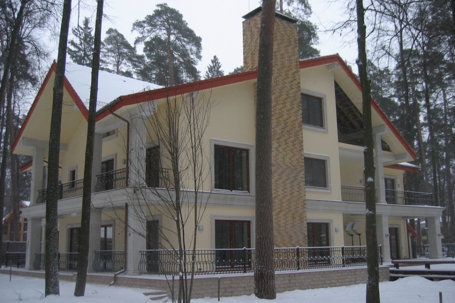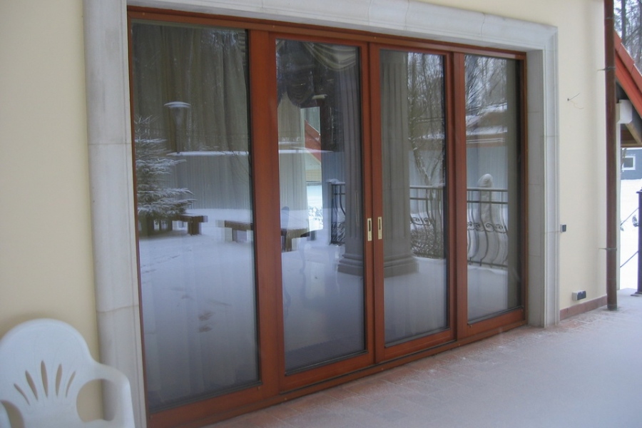Частный дом в Петрово-Дальнее (Подмосковье), остекление объекта: деревянные австрийские окна Гаульхофер из клееной лиственницы, балконные двери двустворчатые штульповые с замком MACO, раздвижные балконные двери типа PSK-portal.