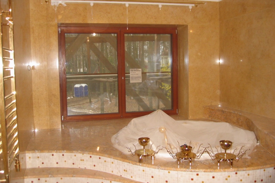 Деревянные австрийские окна Natureline-70 из клееной лиственница, глубина коробки 70 мм, трех контурное уплотнение, теплоизолирующий двухкамерный стеклопакет (Termostop). Использование окон Gaulhofer обеспечило высокий уровень теплоизоляции Uw=1,0 W/m2K, что позволило значительно увеличить площадь окон и дверей.