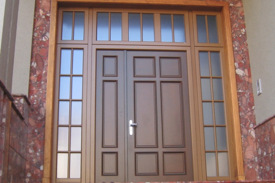 Оформление и дизайн окон с декоративные раскладками (шпросами) 38 мм изнутри деревянные из древесины меранти, снаружи алюминиевые, которые не разрезают стеклопакет, но внутри имеются дуплексы, имитирующие разрезку. Внешний алюминий надежно защищает жилище от любой непогоды, окраска под текстуру дерева подчеркнула индивидуальность дома.