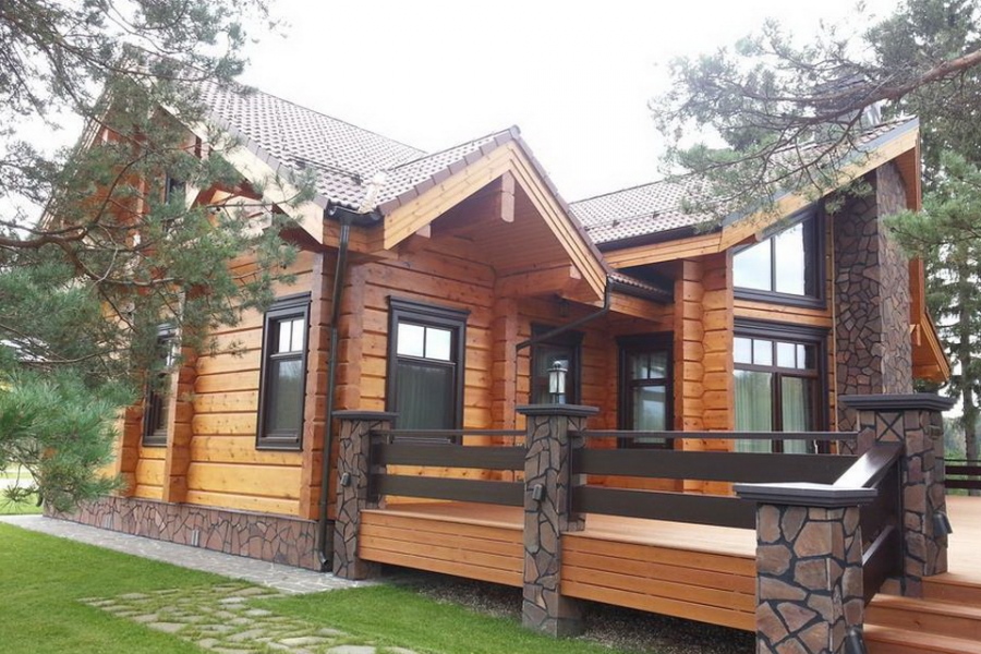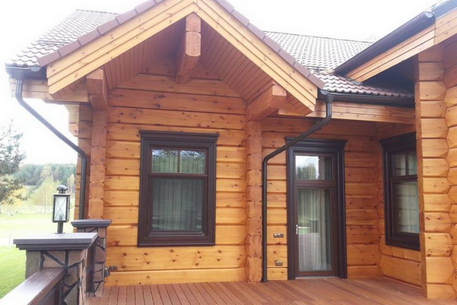 Деревянный дом в Тверской обл, остекление объекта: австрийские деревянные окна Гаульхофер, балконные двери раздвижные типа PSK-portal, немецкие рулонные москитные системы.