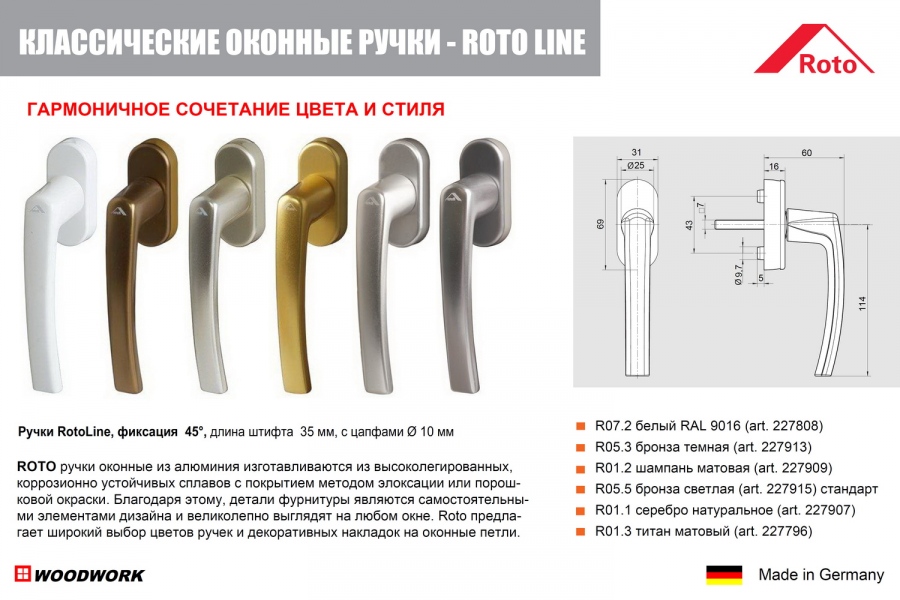 Ручки Roto Line - наша классическая оконная ручка разработана и протестирована для длительной эксплуатации. Элегантный дизайн с гармоничными линиями наряду с высококачественными элементами из алюминия обеспечивают комфортную эксплуатацию ручки.