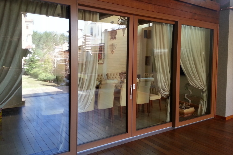 Частный дом в поселке Троице Лыково, остекление объекта: австрийские дерево алюминиевые окна Гаульхофер, раздвижные двери HS-portal, входные деревянные двери из лиственницы, алюминиевые двери Shueco для вспомогательных помещений. Для остекления бассейна использовались дерево-алюминиевые окна из лиственницы, фрамужные механизмы с электроприводом (пульт ДУ).